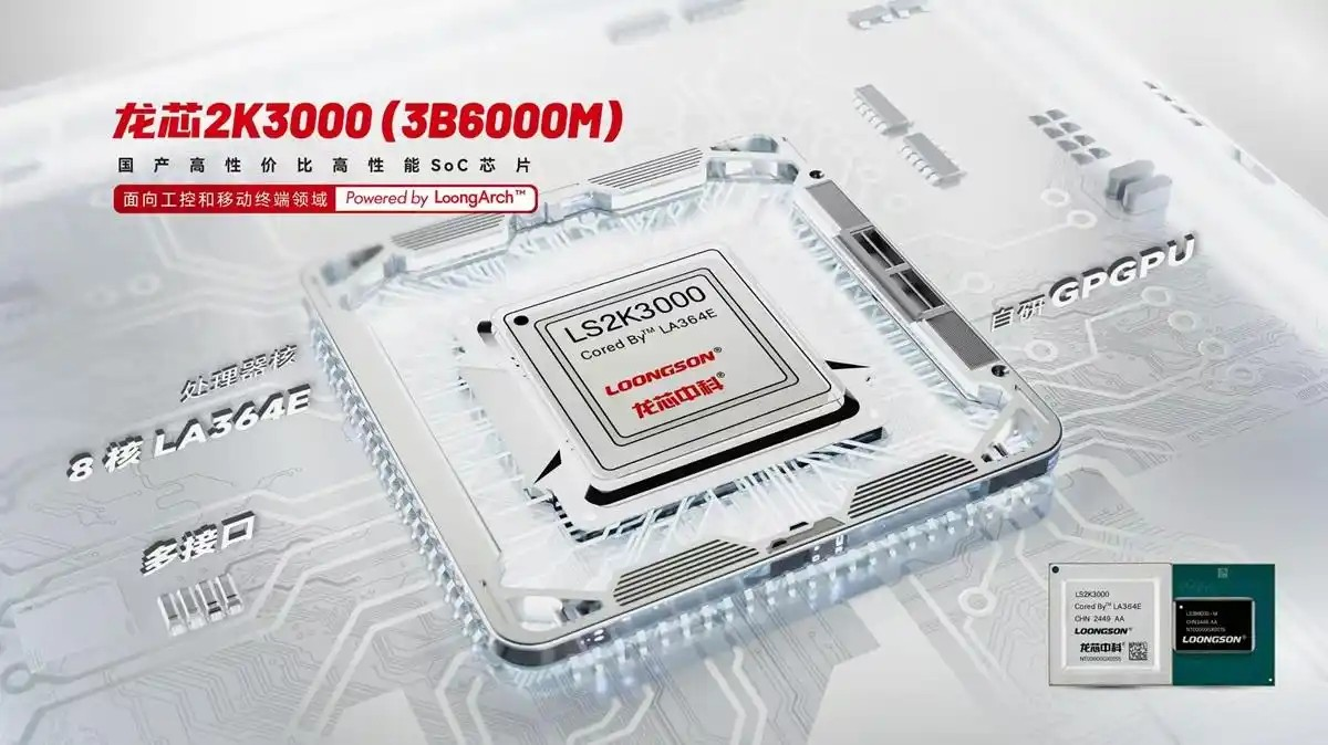 一同发布的还有面向智能终端和工控领域的 2K3000/3B6000处理器。龙芯 2K3000 主要针对智能终端应用场景,具备高性能、低功耗等特点,能够满足笔记本电脑、云终端等设备对于处理器性能与能耗的要求;3B6000 则专注于工控领域,在稳定性、可靠性方面进行了优化,可广泛应用于工业自动化、智能交通等工业控制场景。此次多款处理器的同步发布,进一步完善了龙芯处理器的产品线,能够更好地满足不同行业、不同应用场景的多样化需求。
