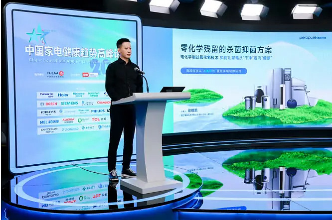 应对这些家电增强健康功能的需求,清越科技潜心研发出电化学制过氧化氢技术,让家电从“干净”迈向“健康”。浙江清越科技有限公司联合创始人兼CEO徐蜂凯分享了“电化学制过氧化氢技术”的四大优势。“一是只需要水。该技术仅需使用普通的水,通过电催化和电合成的方式,便可实时制备出可控浓度的过氧化氢溶液。二是本真绿色。该技术仅以“水”和空气中的“氧气”作为基础原料,借助清洁电能通过独特设计的电化学反应堆,实现原料至过氧化氢的高效定向转化,而且使用后的作用产物完全分解为纯粹的水和氧气,整个过程无污染。三是生活饮用水级别。经检测,清越科技电化学技术产生的过氧化氢溶液的微生物指标、毒理指标、一般化学指标、放射性指标均符合生活饮用水卫生标准级别,无有害副产物产生。四是柔性适配可定制。通过与国内外多品类头部家电巨头的研发团队深度合作、协同攻关,清越科技实现了电化学模块对不同应用场景的多尺度定制与柔性适配。”他介绍说。