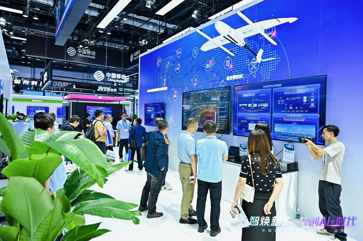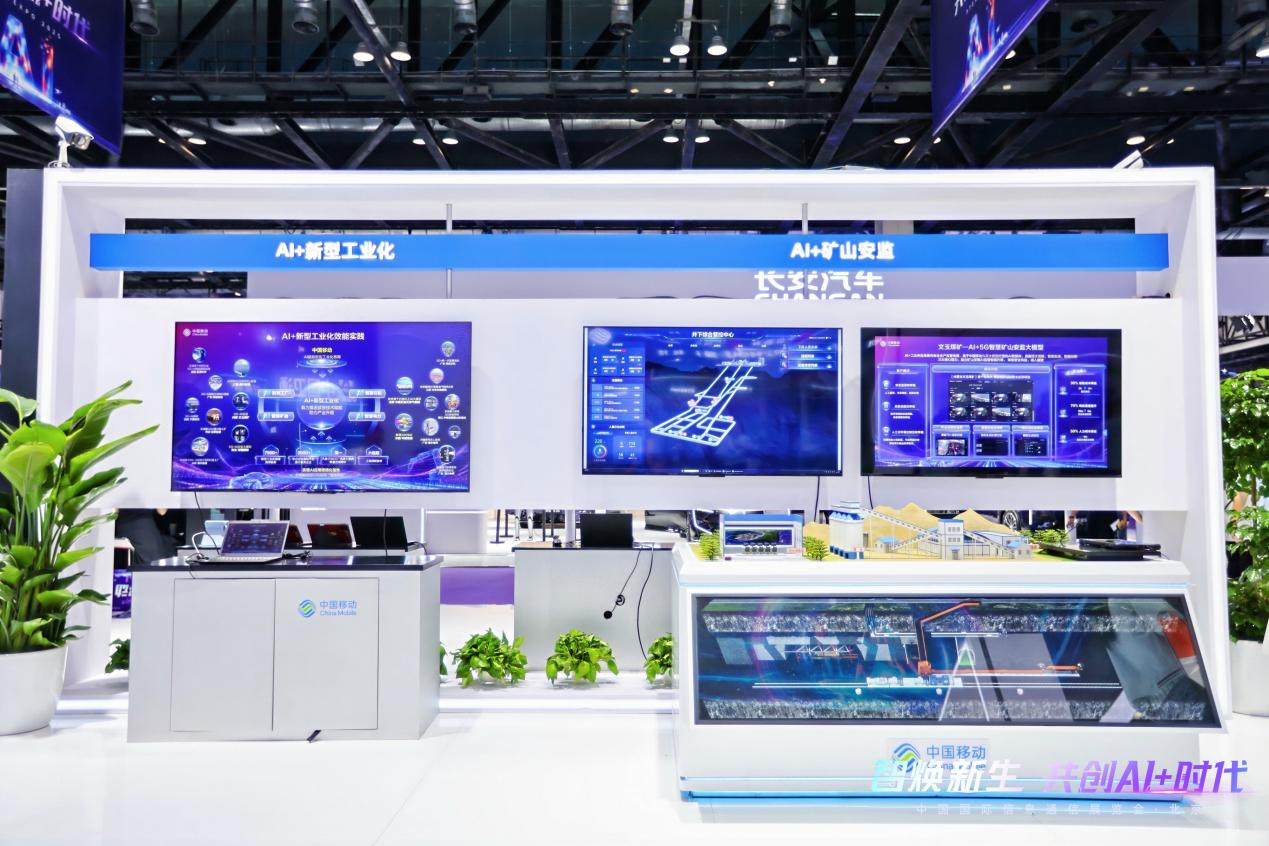 中国移动展区生动呈现了未来生产、生活、社会治理的智慧新图景,通过“技术+场景”深度融合,推动多领域实现智能化升级。