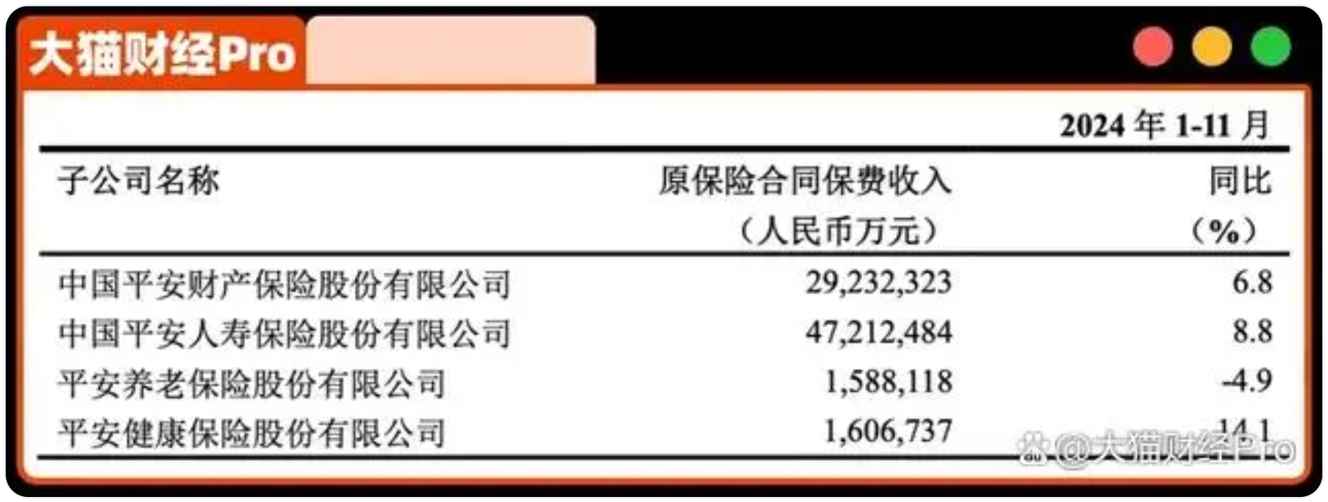 2023年,中国平安的总保费收入站上了8000亿,开启了平安发展的新篇章,2024年1-11月,与去年全年的保费只差几十亿,今年全年肯定会继续站上8000亿,继续领跑。