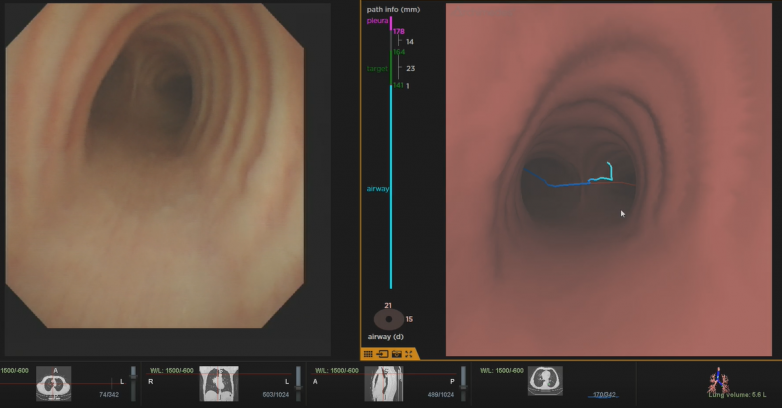 当天接受手术的患者已确诊肺腺癌,因心脏功能不全无法行外科手术切除。经过与患者充分沟通后,李教授团队根据相关指南共识为患者定制了“经支气管射频消融治疗”方案。