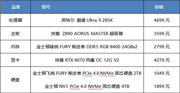 英特尔的酷睿200系列处理器发布后,新的性能翘楚必是最高阶的Ultra 9 285K,与之匹配的当然还有Z890芯片组主板,配合更高速的8400MT/s内存和高性能PCIe 4.0固态硬盘,这些未来几年都无需再升级。显卡首选RTX4070系列,毕竟50系还要等待一段时间,未来性能不足更换显卡即可。