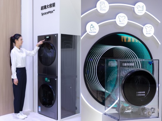 展区内的全新AI神 黑钻热泵洗烘旗舰是技术集大成之典范。该产品实现了18公斤洗涤+15公斤烘干的巨大容量,轻松解决特大号床被等大件洗烘难题。其搭载的AI洗涤和AI热泵烘干技术利用先进的智能传感算法,能够实现6重感应,自动匹配适宜的洗烘方案,最快98分钟即可洗烘完成。在洗衣时,自动投放2.0功能根据每次的洗衣量自动分配适量的洗涤剂和柔软剂,强大的劲速喷雾有助于洗涤剂更快渗透织物,加快漂洗速度,结合智能变频技术,让洗涤更节能、高效、安静。在烘干时,低温热泵烘干技术将温度恒定在60度,呵护精贵面料的同时更节能高效。不仅如此,AI神 黑钻热泵洗烘旗舰还具有领先的冷凝器自清洁、蒸汽除菌程序等功能,活水直冲能有效清除机器里积聚的绒毛和污垢。自动开门功能则可减少霉菌滋生、确保衣物清洁卫生,为用户提供健康、安心的洗护体验。