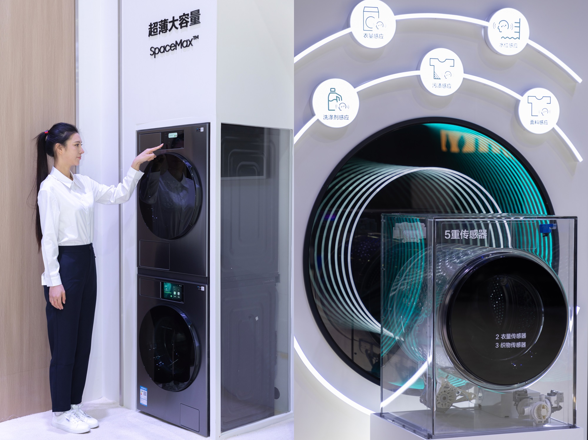 AI时代,洗衣机行业正在经历着前所未有的变革,兼顾清洗、烘干和护理任务的产品,已成为提升生活品质的一大利器。在AWE 2025上,三星展示了旗下高效洗衣和干衣的集大成者——AI神 黑钻热泵洗烘旗舰。该产品搭载多重智能感应技术,AI洗涤和烘干功能可自动识别衣物重量、材质和脏污程度,精准把控洗涤过程中的水位、洗涤剂用量、时间以及烘干流程。配合AI泡泡净技术™和低温热泵烘干技术,可深入衣物纤维内部瓦解污渍的同时对衣物进行柔和烘干,不仅呵护了面料、色彩和质感,而且让衣物更加蓬松舒适。