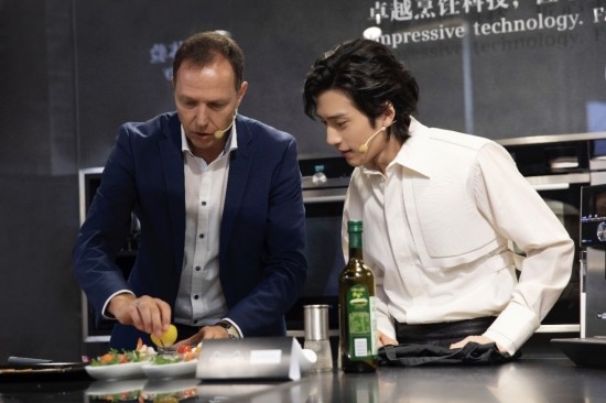 博西家用电器(中国)有限公司厨电产品事业部高级副总裁叶格与井柏然共同使用