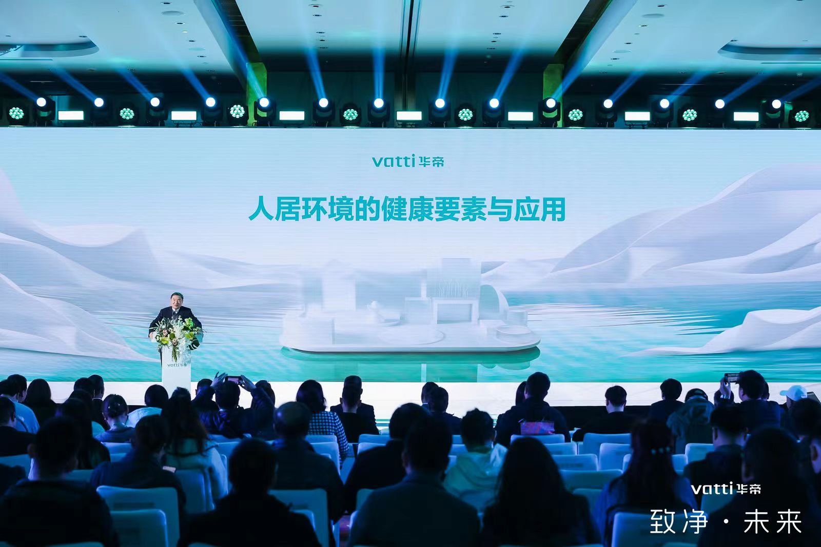 (图为国家空气净化产品质量监督检验中心专家委员会委员、中国室内装饰协会室内环境监测工作委员会专家组组长 吴吉祥作主题演讲)