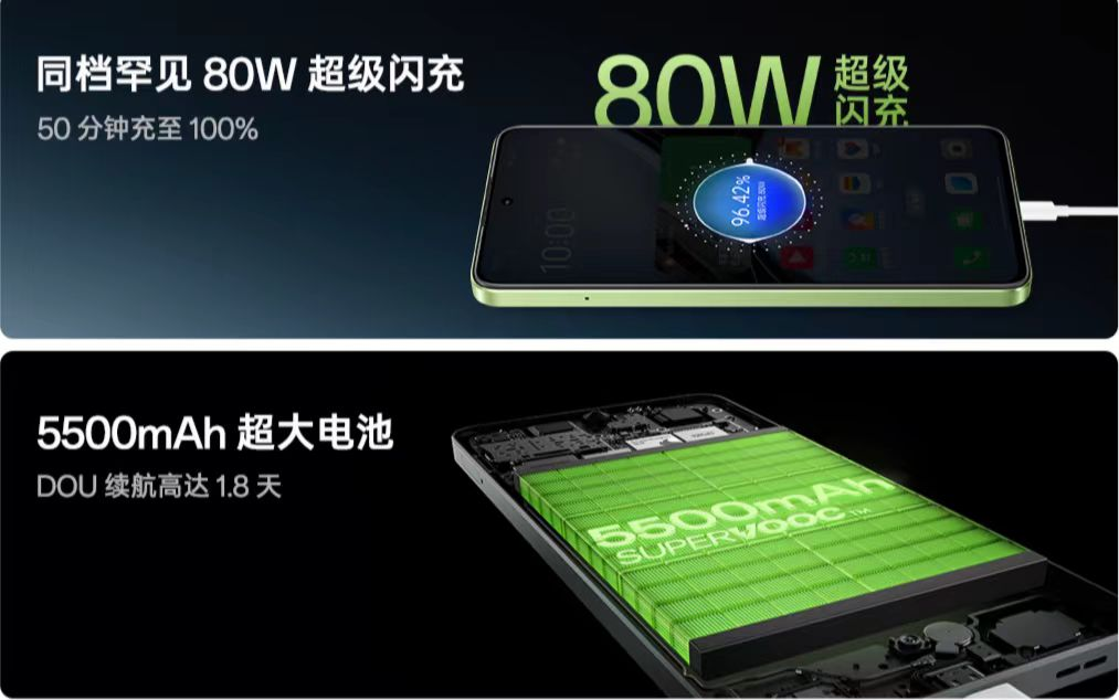高功率快充一直是旗舰机专属配置,OPPO K12x带来同档位罕见的80W超级闪充,充电5分钟可以实现刷短视频2.2小时或视频聊天1.35小时,仅用50分钟就能充至100%,关键时候迅速回血。同时OPPO K12x搭载长寿版5500mAh超大电池,DOU 续航测试长达 1.8 天,可以刷短视频14.42小时,或开黑8.34小时,不管是出差还是旅行,都能让你一路撑到底。OPPO K12x还采用自研「智慧充电引擎 4.0」,可以实现久充保护,在零下 20℃极寒环境下依然能正常充电。首销期间,OPPO K12x赠送四年电池保,让用户使用更长久、更安心。