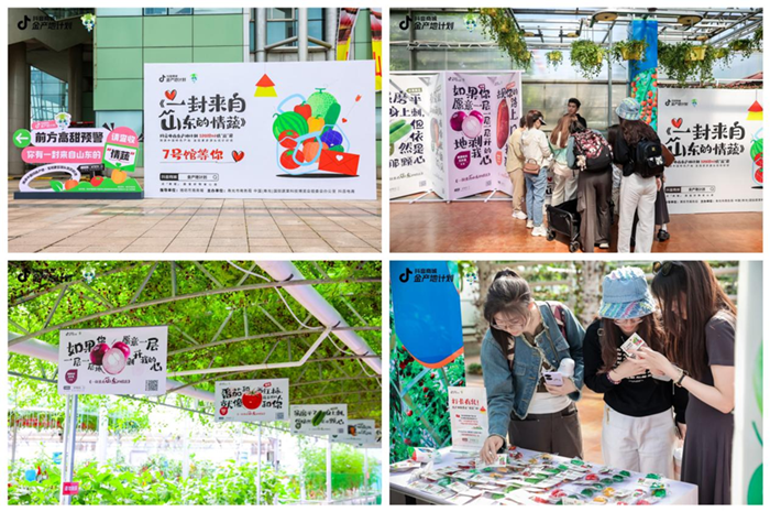 仲夏时节,瓜果飘香,享誉海内外的第二十五届中国(寿光)国际蔬菜科技博览会(以下简称菜博会)正在如火如荼的进行。5月,抖音电商「金产地计划」溯源山东果蔬,借助平台优势,助力山东果蔬走向全国消费者。为了深化产地心智,520期间,「金产地计划」与菜博会联动合作,举办了一场别出心裁的限时展,向消费者送出一封来自山东的“情蔬”,并配合抖音平台线上热点话题、达人联动等内容造势,为山东擦亮果蔬“金名片”。