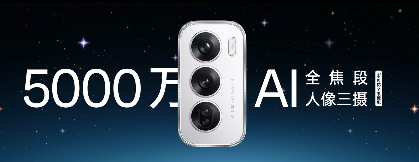 Reno12 系列配备 5000 万 AI全焦段三摄,带来新升级的 5000 万 AI人像摄像头、5000 万 AI 广角主摄与 112 度 AI 超广角摄像头,并搭载 5000 万AI 猫眼镜头,帮助用户以影像记录从全身到半身的多种人像题材。借助 OPPO 领先的 AI 能力,Reno12 系列融入多项 AI 影像能力,帮助用户通过全新一代的 AI 辅助创作,为自己的最佳时刻更添创造力。