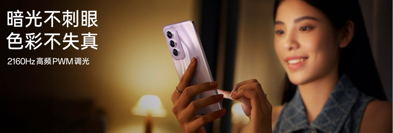Reno12系列提供医疗级的护眼技术,并通过国家眼科中心护眼认证。基于与浙江大学联合进行的人因学研究,Reno12 系列可基于环境光调节屏幕色温与亮度,缓解长时间观看手机后的疲劳视觉感知。Reno12 系列借助高亮度下类 DC 调光与低亮度下 2160Hz 高频 PWM 调光,为对屏幕闪烁敏感的用户提供额外呵护,减少因使用屏幕导致的视疲劳。