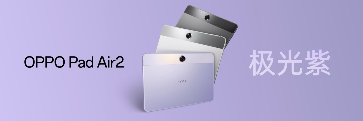 OPPO Pad Air2 全新配色极光紫,光哑同体,紫中带银,是 Reno12 银幻紫的最佳 CP。
