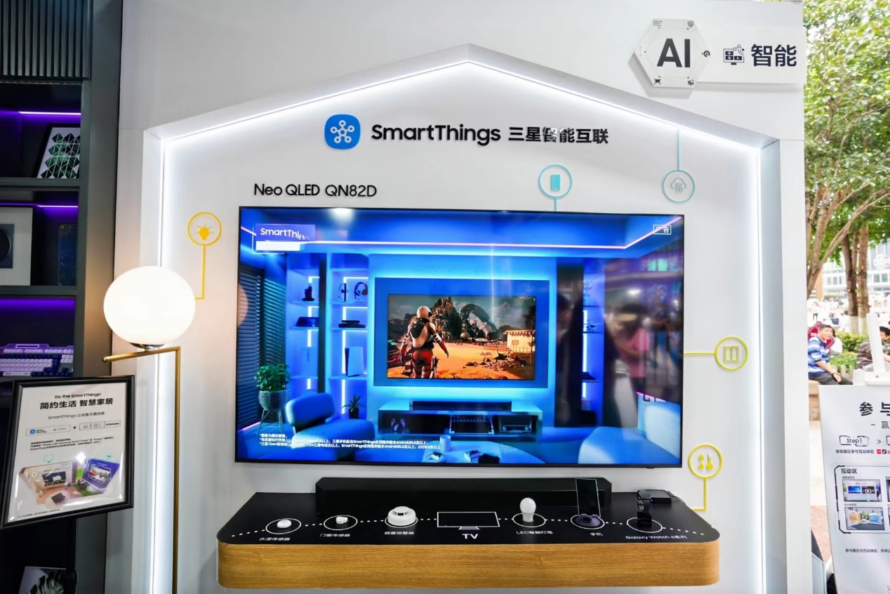 多年来,三星电视凭借卓越的软件生态打造,将个性化、可持续理念融入消费者的日常家电产品,实现艺术、生活与功能主义的平衡兼容,打造现代化智能家居生活。活动现场,三星通过 QN82D与QX5D两款产品,为参观者展示了三星电视新Tizen智能系统是如何为“家”赋能的。该系统借助内置的SmartThings网关,可以连接并控制Matter设备及SmartThings兼容的Zigbee设备,轻松自定义个性化的智能家居场景。3D全景地图功能可帮助用户直观监控和控制家用电器和物联网设备,使其成为家电控制中心。Gaming Hub聚合海量的游戏内容,能够畅玩2000+款游戏。新的Samsung Daily+功能整合多种服务,通过描绘出用户生活习惯的数字画像,将电视变为一站式家庭生态系统枢纽,让用户舒适管理日常生活。