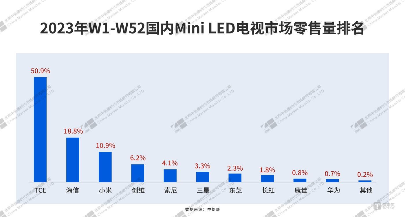 另外在技术的研究领域,TCL也做在全球厂商的前面,2005年TCL就在集团层面成立工业研究院,加强对前瞻性核心技术的研发。并在2006年启动了Mini LED技术相关基础研究,借助上游华星的助推,2019年TCL开始量产Mini LED,至此拉开了Mini LED电视时代的序幕,并在这一领域成为了奠基者。