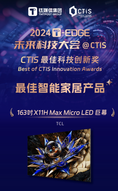它研发并制造出163吋的X11H MAX巨屏,使用了目前最先进的Micro LED显示技术,在今年的“家电奥斯卡”AWE亮相就备受瞩目,并获得了2024未来科技大会的“最佳智能家居产品”奖项,在众多国际品牌的优质产品中脱颖而出。
