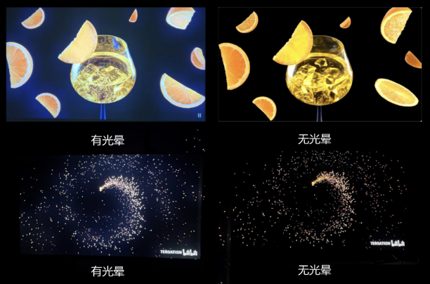 光晕难题曾一直困扰着Mini LED电视,因为Mini LED电视显示的黑色更纯净,当电视控光处理不好的话,容易在影像边缘形成泛白、模糊的光晕虚影。盲目提高电视的背光分区和峰值亮度会加剧这种现象,因此让很多电视厂商都望而却步。
