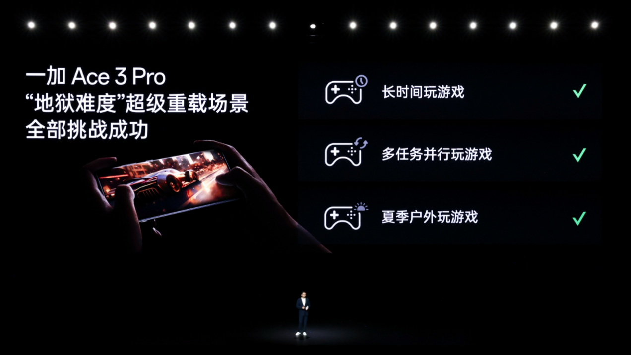 满足日常应用场景之外,一加 Ace 3 Pro 彻底释放性能潜力,挑战行业从未有人做到的超级重载场景。在三大堪称“地狱级难度”的超级重载场景中,一加 Ace 3Pro 可以做到持续玩游戏从满电到关机全程满帧运行,多任务并行玩游戏 1 小时持久满帧,以及 30℃ 高温玩游戏 1 小时全程满帧流畅。一加 Ace 3 Pro 是行业唯一可以满帧征服三大“地狱级难度”重载场景的手机产品,为用户带来前所未有的性能表现,是当之无愧的性能之王。