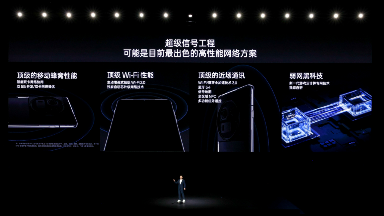 一加联合三大网络运营商共同打造了行业顶级的「超级信号工程」,实现了手机通讯网络体验的全方位提升,借助双卡信号增强、主动增强式超级 Wi-Fi 2.0、无网通信等多项领先技术,为用户带来最出色的移动蜂窝性能、Wi-Fi性能、近场通讯性能与弱网游戏通讯表现。