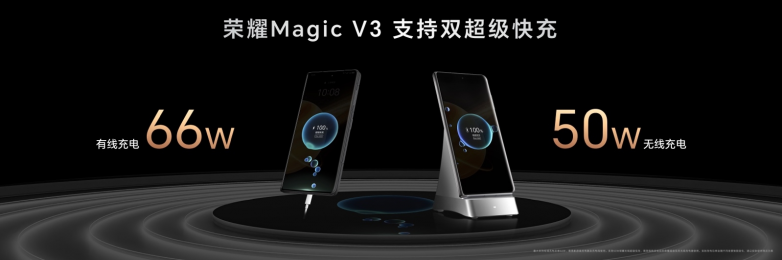 此外,荣耀Magic V3支持IPX8级防水,是行业唯一通过2. 5米防水认证的折叠屏产品;荣耀Magic V3支持66W有线充电和50W无线充电,是轻薄折叠屏中首款支持无线充电的产品。与此同时第三代青海湖电池硅含量行业首次达到10%,荣耀Magic V3通过中国质量认证中心全天续航认证,带来更轻薄、续航更长久的折叠体验;影像方面也带来大幅升级,毫米级机身支持潜望长焦,强大的全焦段影像能力让折叠屏拍照体验跨越式升级。
