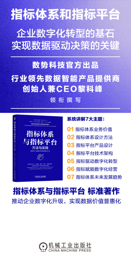 7月17日晚,北京数势云创科技有限公司(以下简称“数势科技”)成功举办“智能驱动,数据管研用一体化新革命”线上发布会。在会上,数势科技联合创始人谭李正式发布并解读了与大数据技术标准推进委员会共同推出的行业首部指标体系、指标平台专业书籍《指标体系与指标平台:方法论与实践》,引来各界高度关注。
