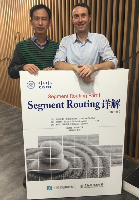 图1 赵旭龙(左)与Segment Routing详解(第一卷)作者克拉伦斯·菲尔斯菲尔斯(Clarence Filsfils)(右)