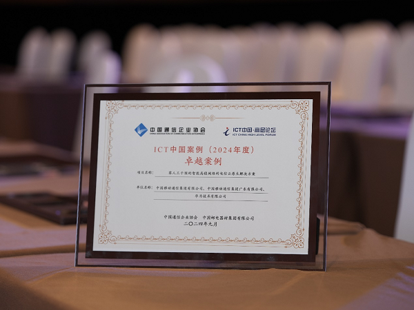 9月25日,在2024年中国国际信息通信展览会上,由中国移动通信集团有限公司联合中国移动通信集团广东有限公司、华为技术有限公司申报的“零人工干预的智能高稳网络的电信云原生解决方案”在众多案例中脱颖而出,荣获ICT中国(2024)应用创新卓越案例(一等奖)。