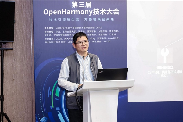 分论坛的最后,北京理工大学OpenHarmony技术俱乐部指导老师徐礼文给与会者从俱乐部学生活动和俱乐部建设等方面分享北京理工大学OpenHarmony技术俱乐部发展情况。据介绍,北京理工大学OpenHarmony技术俱乐部聚焦“操作系统基础软件研究”,秉承“创新产教融合模式,培养OpenHarmony开源人才”的理念,采用“课题承接+人才培养”的双引擎驱动模式,以课题锻炼人才,以人才驱动创新,打造操作系统的人才和技术高地。这种创新产教融合模式,对于培养OpenHarmony人才具有重要的推动作用。