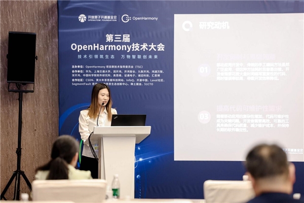 大模型技术是时下前沿热门技术,其与OpenHarmony生态融合成为高校学子钻研的重要方向。来自华中科技大学的博士后赵彦杰以大模型辅助ArkUI开发的挑战与机遇为主题,为参会者介绍了创新的声明式UI开发辅助平台DeclarUI,它利用大模型技术优化UI开发流程。该平台能够实现从设计图到代码的智能转换,具有精准的组件识别和清晰的页面跳转逻辑和灵活的多平台代码生成,为ArkUI框架提供强大支持,同时兼容多种主流框架。通过独特的页面转换图技术,DeclarUI有效辅助开发者构建复杂的多页面应用。赵彦杰强调“DeclarUI能显著缩短开发周期,提升代码一致性和质量,特别适合ArkUI开发者,并可助力打造高质量OpenHarmony生态。”