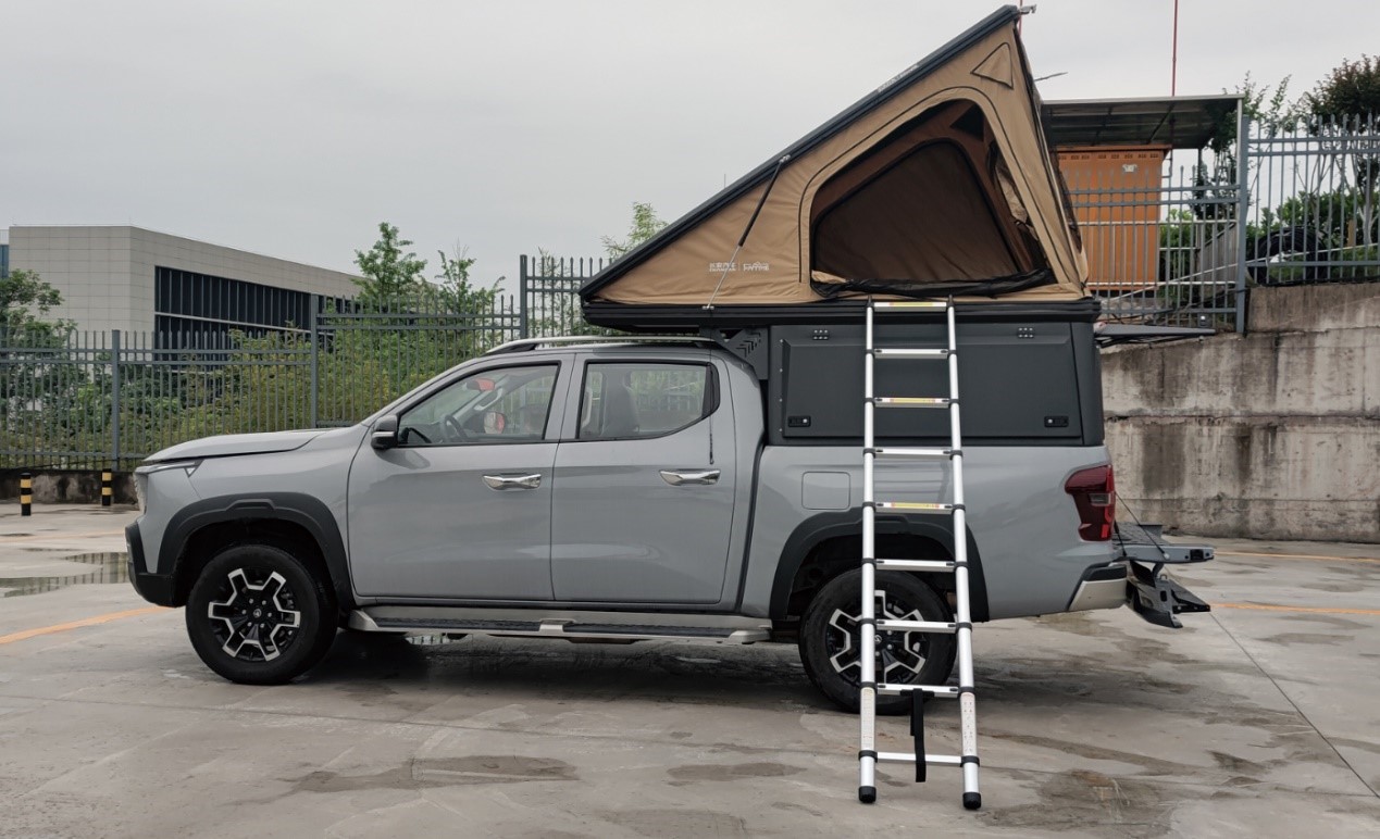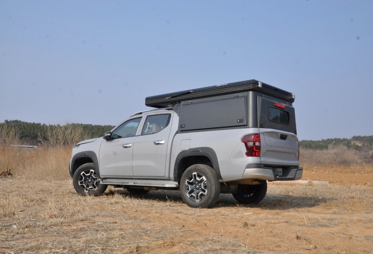 长安猎手远行版后货箱部分增加了与前车厢齐高的箱体,这个箱体采用静电喷涂工艺,材质防刮耐磨,能够轻松应对户外极端条件。而车顶帐篷外壳则采用航空全铝材质,既轻便又坚固。即使在增加车顶帐篷后,车辆高度也依然保持在2.2米以内,满足大部分限高要求。