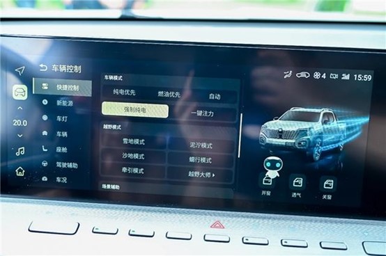 同时长安猎手还提供了十种驾驶模式切换功能,包括四种日常模式和六种皮卡定制模式如雪地、沙地、泥地等定制化模式,覆盖全场景全地形,满足不同用户的个性化需求。更值得一提的是长安猎手还从皮卡车主真实用车场景出发开发了行业首创的“一键注力”功能,在装载近1吨、海拔高差2000多米的长距离爬坡中也能实现高效补能,从而保证车辆在满员满载工况下面对爬长坡等极限场景时拥有充沛动力输出,有效解决柴油皮卡“多拉慢跑”“高速疲软”等痛点问题。