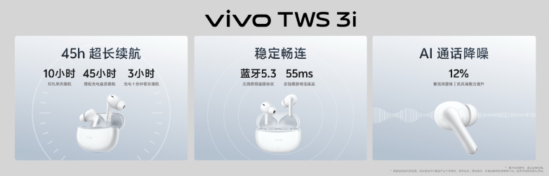 vivo TWS 3i上市了经典配色墨蓝,即日开售,零售价99元,10月14日~11月30日期间搭配vivo X200系列一起购买立减10元;长续航版将于10月19日开售,售价169元,10月14日~31日期间优惠价仅需129元。