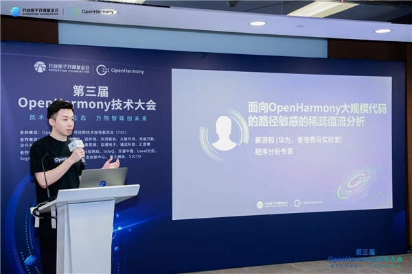 与此同时,华为2012实验室资深技术专家蔡源稻也分享了基于OpenHarmony的面向大规模代码的路径敏感的稀松值流分析技术。该技术旨在打造下一代的静态分析引擎,实现对OpenHarmony亿级代码的快速且准确分析,进一步提升了OpenHarmony系统的安全性和可靠性。