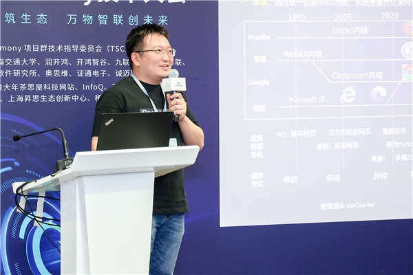 Web应用生态是目前标准最完善、开发者规模最大、服务数量最多的应用生态。尽管Web应用生态起源于PC时代,但在过去十多年的移动浪潮中,它不仅没有被边缘化,反而在小程序等产品形态中展现了强大活力。华为菲尔兹实验室Web技术专家王佐在中分析了Web应用的重要性,并对下一代Web内核的演进的方向做出预测,他指出凭借其跨端/跨平台能力、卓越的生产效率和低门槛的开发条件,Web应用生态已成为应用生态的重要组成部分,也是OpenHarmony重点发展的领域之一。