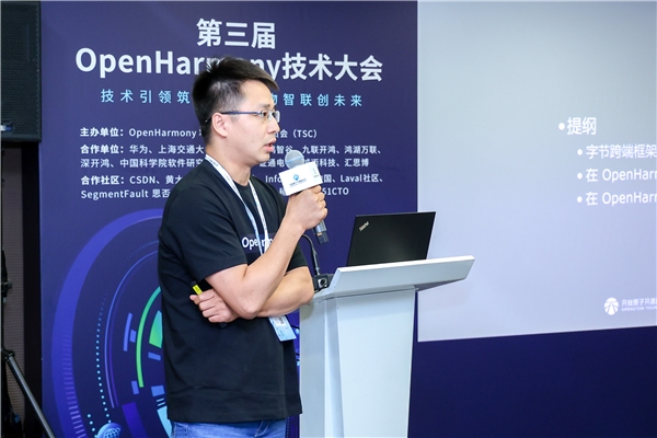 (OpenHarmony跨平台应用开发框架TSG主任、OpenHarmony ArkUI开发框架首席架构师余枝强发言)