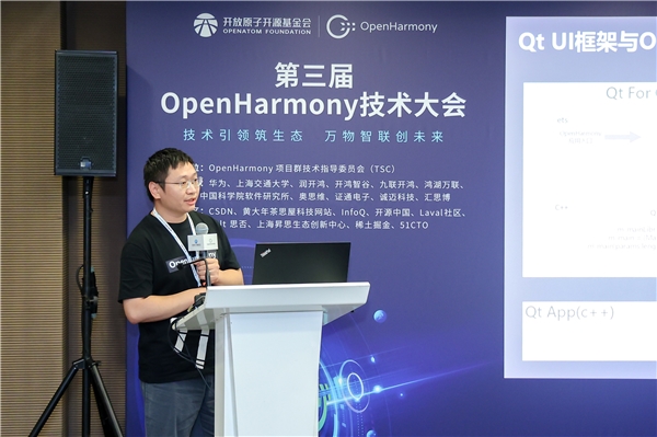 软通动力资深技术专家王利忠分享了如何在OpenHarmony上扩展或自定义Qt的UI框架,以满足不同场景下的UI需求。王利忠在演讲中为与会嘉宾介绍了Qt的UI框架与OpenHarmony结合的经验,分享了Qt Quick在OpenHarmony中的表现与应用,并展示了Qt示例程序、案例方案。在他看来,Qt的模块化设计,完美适应了OpenHarmony多场景的UI定制需求。