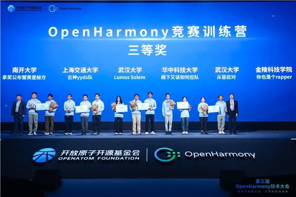 OpenHarmony项目群工作委员会(PMC)执行总监陶铭为三等奖团队颁奖