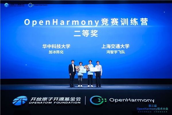 OpenHarmony项目群工作委员会(PMC)执行主席柳晓见为二等奖团队获得者颁奖