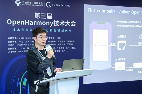 本次分论坛的最后,华为OpenHarmony跨平台框架专家高迪分享了关于Flutter Impeller-Vulkan OpenHarmony化方案和性能优化实践的内容。高迪认为Impeller渲染引擎是Flutter保持优势竞争力的核心组件,高迪深入解析了将Impeller渲染引擎应用到OpenHarmony系统中所面临的跨平台兼容性和性能挑战,并分享了相应的优化方案和实践经验。