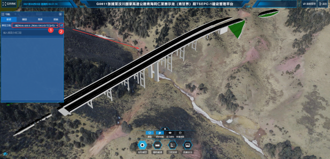 选择需要查看的单位工程信息,鼠标双击单位工程名称系统会自动读取该单位工程下所有的分项工程结构物,点击分项工程名称,选择桩号部位鼠标左键双击即可定位到该结构物模型。同时系统支持便捷快速搜索功能。