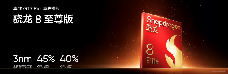 真我GT7 Pro搭载骁龙8至尊版移动平台,采用台积电第二代3nm工艺制程,CPU 采用高通自研 Oryon 架构,拥有2个超大核+6个大核,超大核频率高达4.32GHz,6个大核的频率也高达3.53GHz,铸就安卓平台性能拐点时刻。