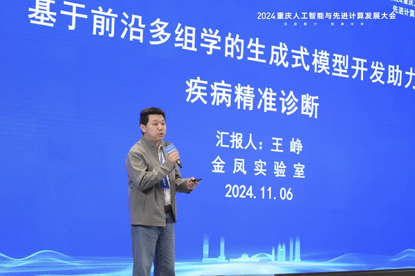 金凤实验室生物医学多模态智算中心负责人、研究员、博导王峥发表了《基于前沿多组学的生成式模型开发,助力疾病精准诊断》的主题演讲,他表示通过人工智能、大数据的赋能,加速“看病”向“算病”迭代的步伐。