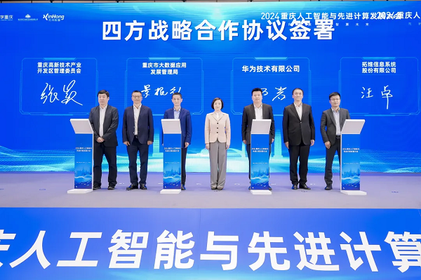 值此全面推进数字重庆基本能力建设的关键时期,重庆市大数据应用发展管理局、重庆高新技术产业开发区管理委员会、华为技术有限公司、拓维信息系统股份有限公司正式签署四方战略合作协议,各方将充分整合资源、优势互补,充分发挥华为公司、拓维信息在硬件、软件根技术和生态资源等优势,共同加快推进鲲鹏、昇腾、开源鸿蒙等产业生态在重庆的落地,并在场景开放、应用创新、人才培养、软件技术服务等方面深化合作、共同发展,助力数字重庆建设。
