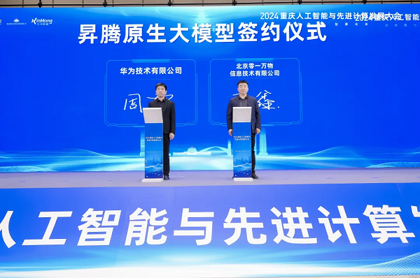 大会现场,华为技术有限公司与北京零一万物信息技术有限公司举行了昇腾原生大模型签约,双方将借此契机深度合作,共同打造大模型生态,推动重庆千行百业的智能化变革与发展。